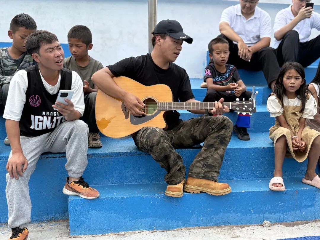 尔吉村云霄大学生乐队与孩子们全部弹唱彝族歌曲