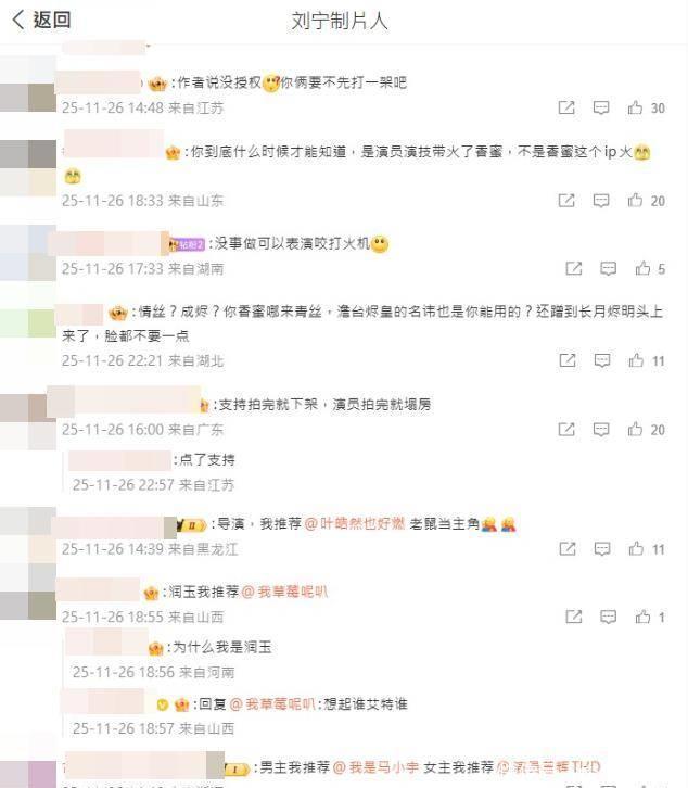 关于《香蜜》将拍短剧版,网友反映广泛不看好,甚而出现无数月旦声浪。很多粉丝涌入制作主说念主留言区炮轰:「一辈子唯有香蜜,思蹭思疯了吧」、「原作家王人不知说念」、「演员没吃香蜜一辈子,制片东说念主吃了香蜜一辈子」、「吃相真出丑」。同期也有东说念主保举短剧东说念主气演员上演,留言串出现何健麒、张翅、陈添祥等东说念主名字。不少东说念主质疑制作方在未赢得原作家应承下就私行晓谕翻拍,留言「连版权王人莫得你在干嘛」、「没版权就拍,援手被举报被作家维权」。由于短剧往往发生撰述权抄袭争议,甚而导致作品下架,让《香蜜》短剧版尚未开拍已接纳到不少月旦。