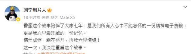 制作主说念主刘宁官宣翻拍短剧。(图/翻摄自微博)