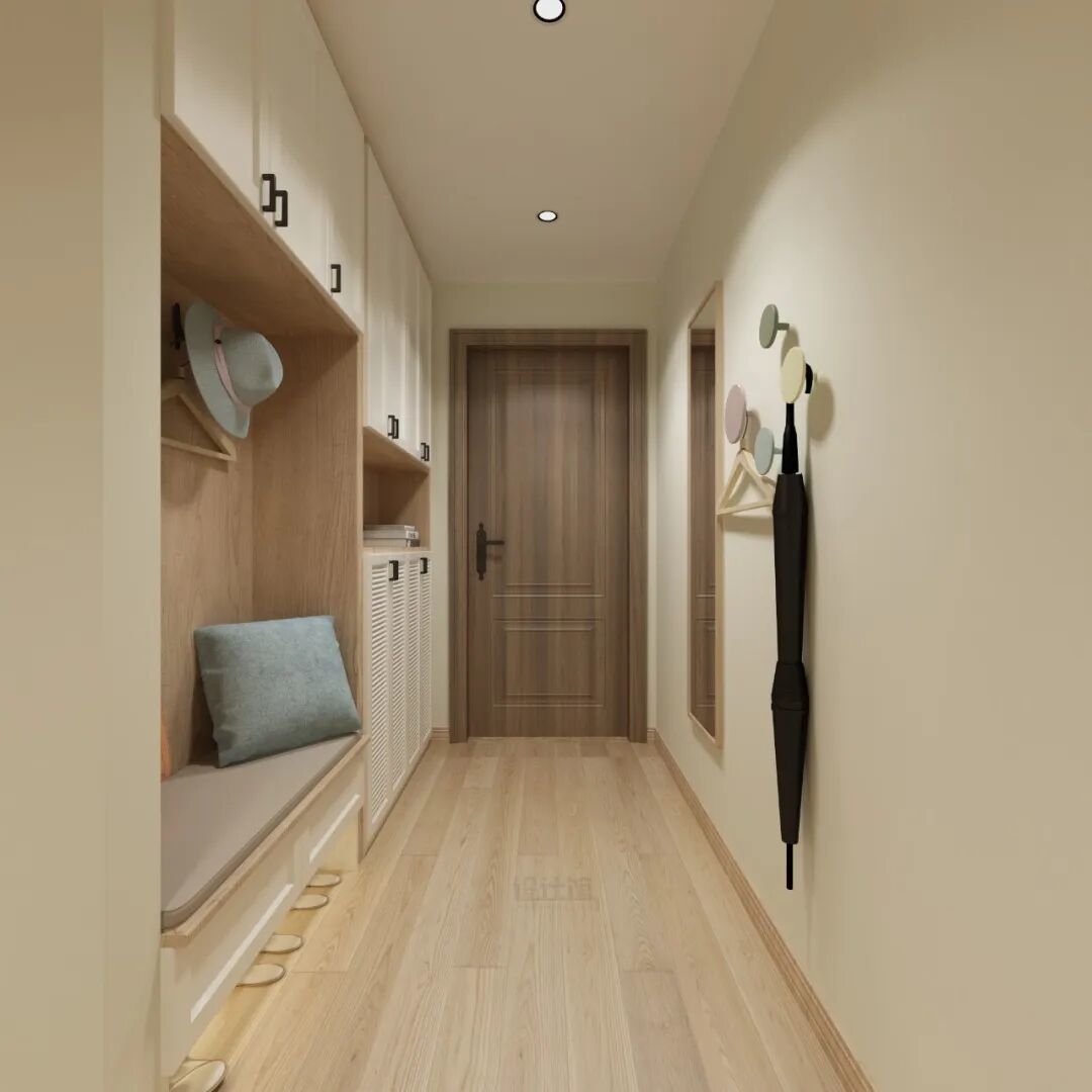 ⑧一面全身镜:玄关装一面全身镜,外出前能整理姿色,也能通过反射光芒和欢跃,在视觉上放大玄关空间,让小户型玄关显得更亮堂大方。