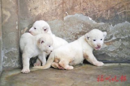 10月3日上昼,动物园猛兽馆外场,3只刚朔月的小白狮将与搭客碰头。它们出身于9月3日,当今仍处于哺乳期,由母狮治理。“它们快长牙了,满50天后就可尝品味肉。”饲养员说。